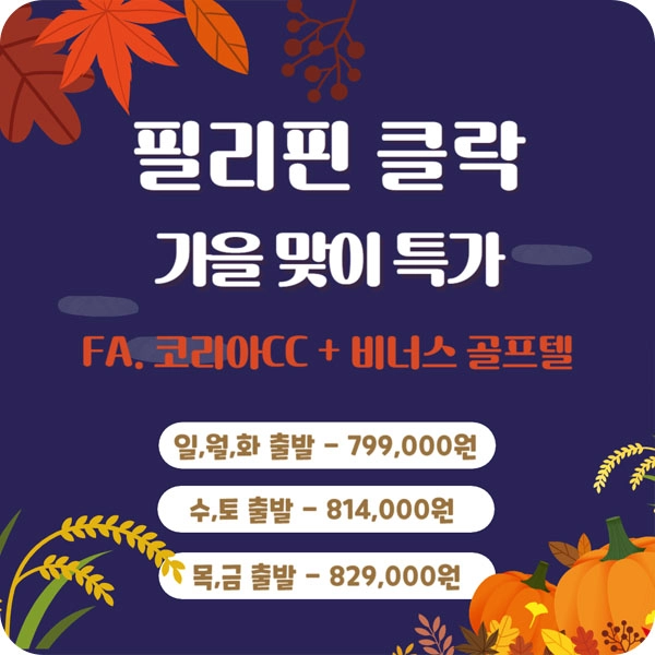 필리핀(클락) 코리아CC+비너스 골프텔 ★1인1실★