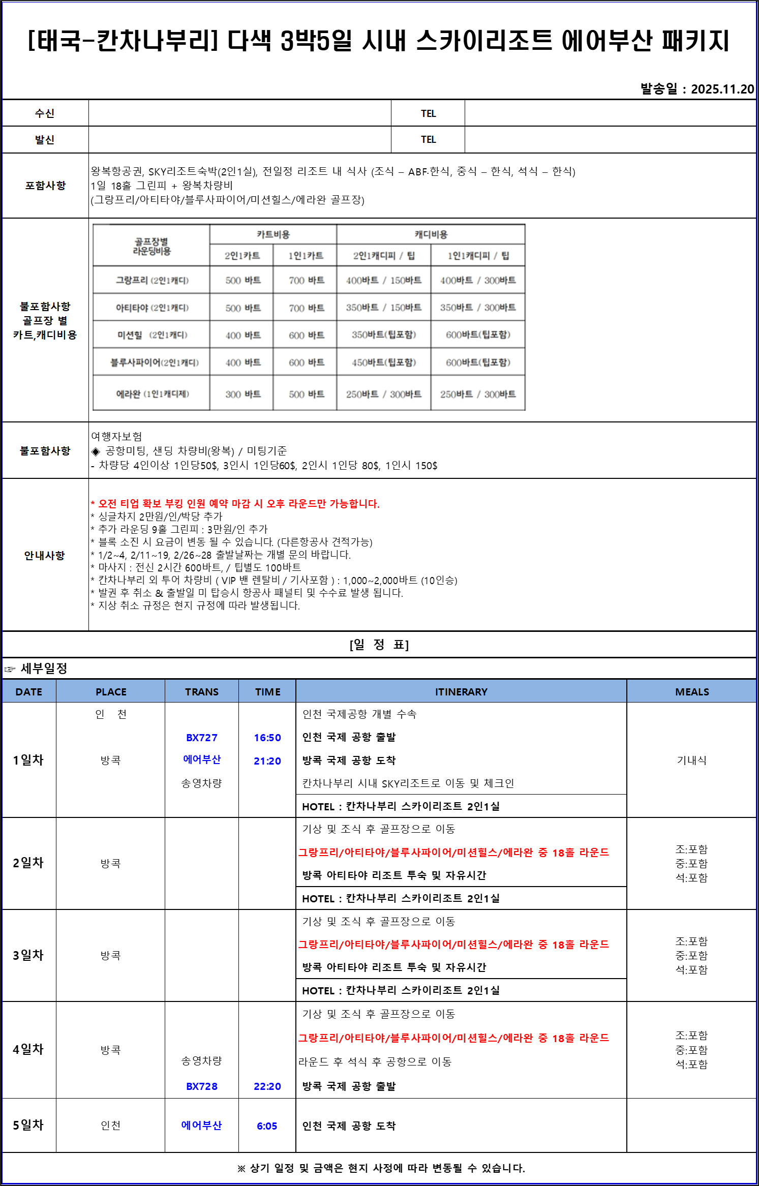 불포함사항 : 골프장별 라운드 비용 (카트,캐디피, 캐디팁),