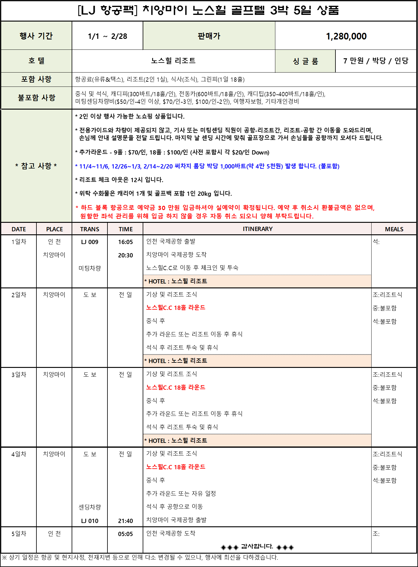 ⛳2026년 치앙마이 초! 특! 가! 예약 이벤트⛳
