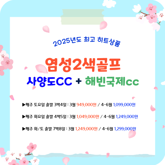 ▶️매주 토요일 출발 3박4일 3월: 949,000원/4월~6월 :1,099,000원