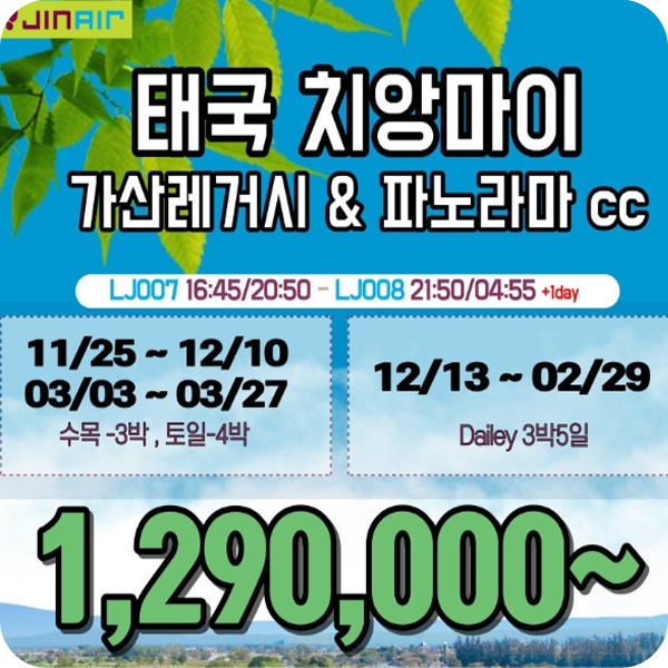 인 천 <-> 치앙마이 : LJ007 (16:45 ~ 20:50)