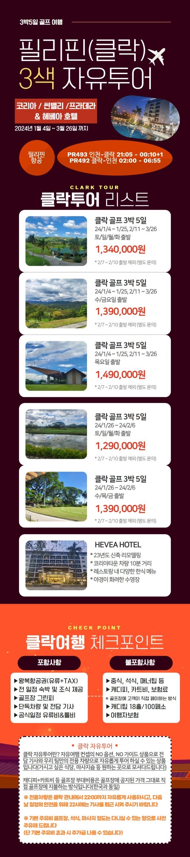 < 필리핀(클락) 3색 3박5일 자유 골프 투어 >