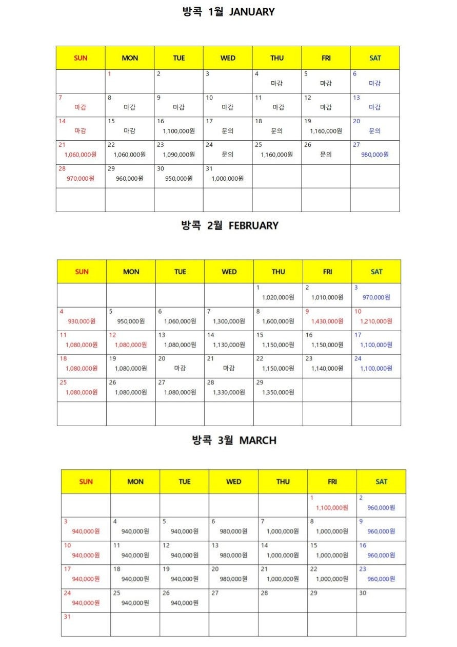 추가 안내사항 | 1. 싱글룸차지 : 4만원/1박당 2. 미팅샌딩비 : 3인출발시 $70/1인 , 2인출발시 $100/1인 3. 쇼핑센터 1회 방문 합니다. 4. 주말(토,일) 및 태국 연휴 라운딩은 12시이후 18홀만 진행 됩니다. 5. 태국 연휴 : 1/1 , 2/26 | ||