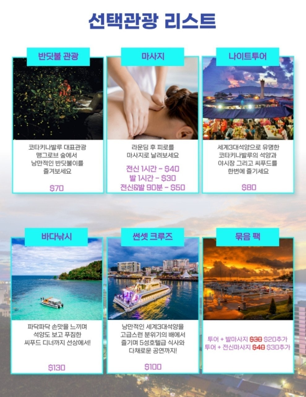 2๏ธโฃ๋ฐ๋ค๋์ : $130/์ธ(4์ธ๋ถํฐ ์ถ๋ฐ) ๋์ ์์ ์ ํ๋ก ๋ง ๋ณด๊ณ ๋งค์ดํ๊น์ง ์ค๋