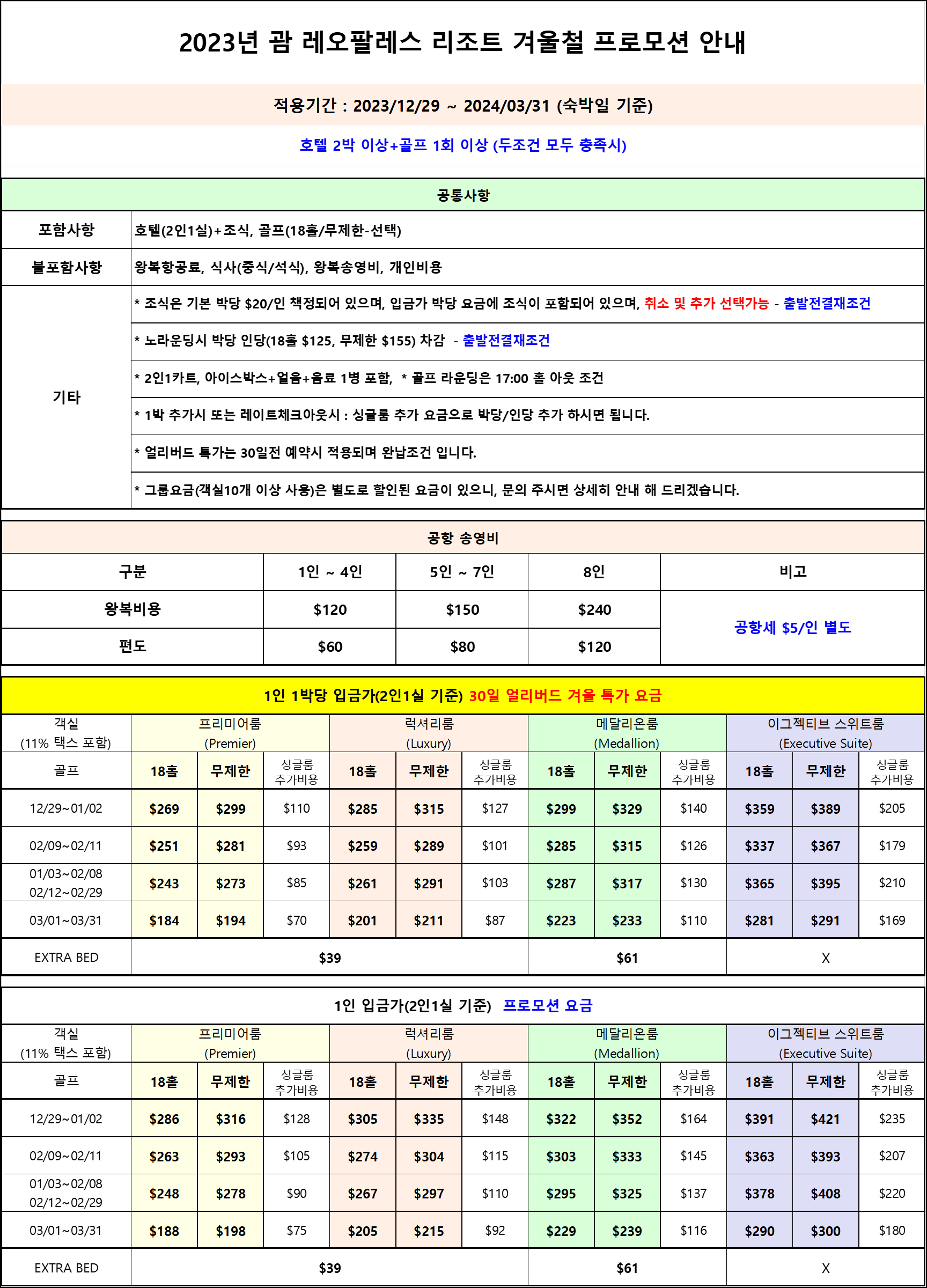 괌 레오팔레스cc 동계 얼리버드 특가