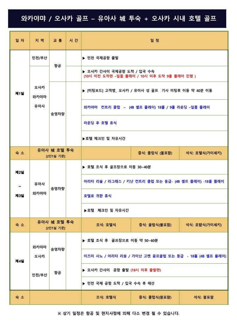 포 함 : 유아사 性 2박(3박), 호텔 조식+석식, 골프 그린피+카트비용,