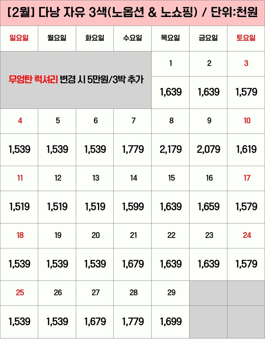 ⭕ 주말 및 현지공휴일 비용