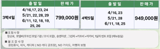 출발일 : 4월 16(마감임박), 17, 23, 24 일