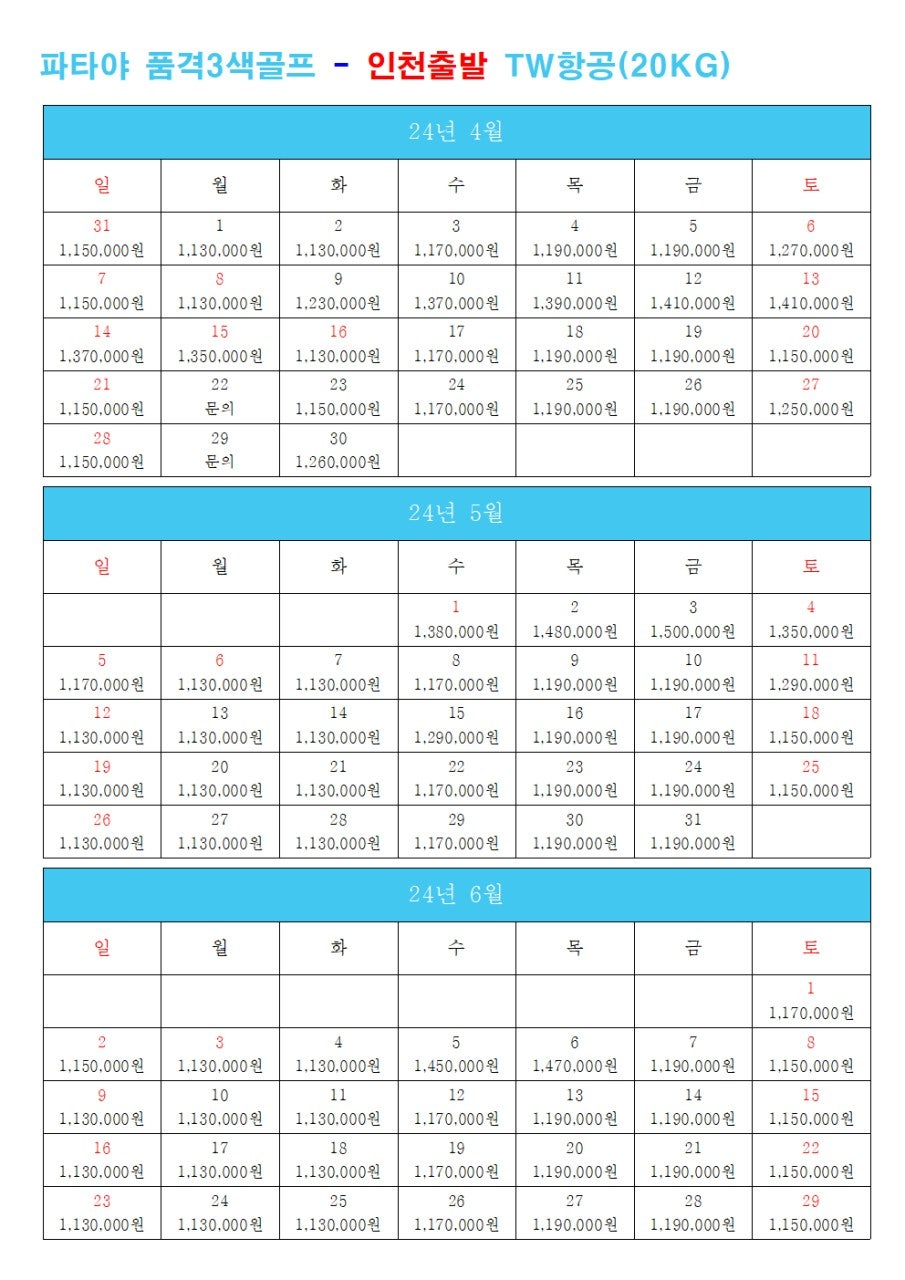 💥인천출발 TW101/102 - 수하물 20Kg