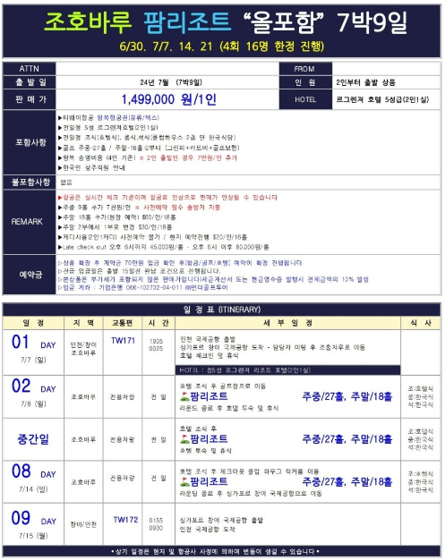 1️⃣실시간 항공 기준으로 실예약시 항공 추가운임 발생 할 수 있습니다.
