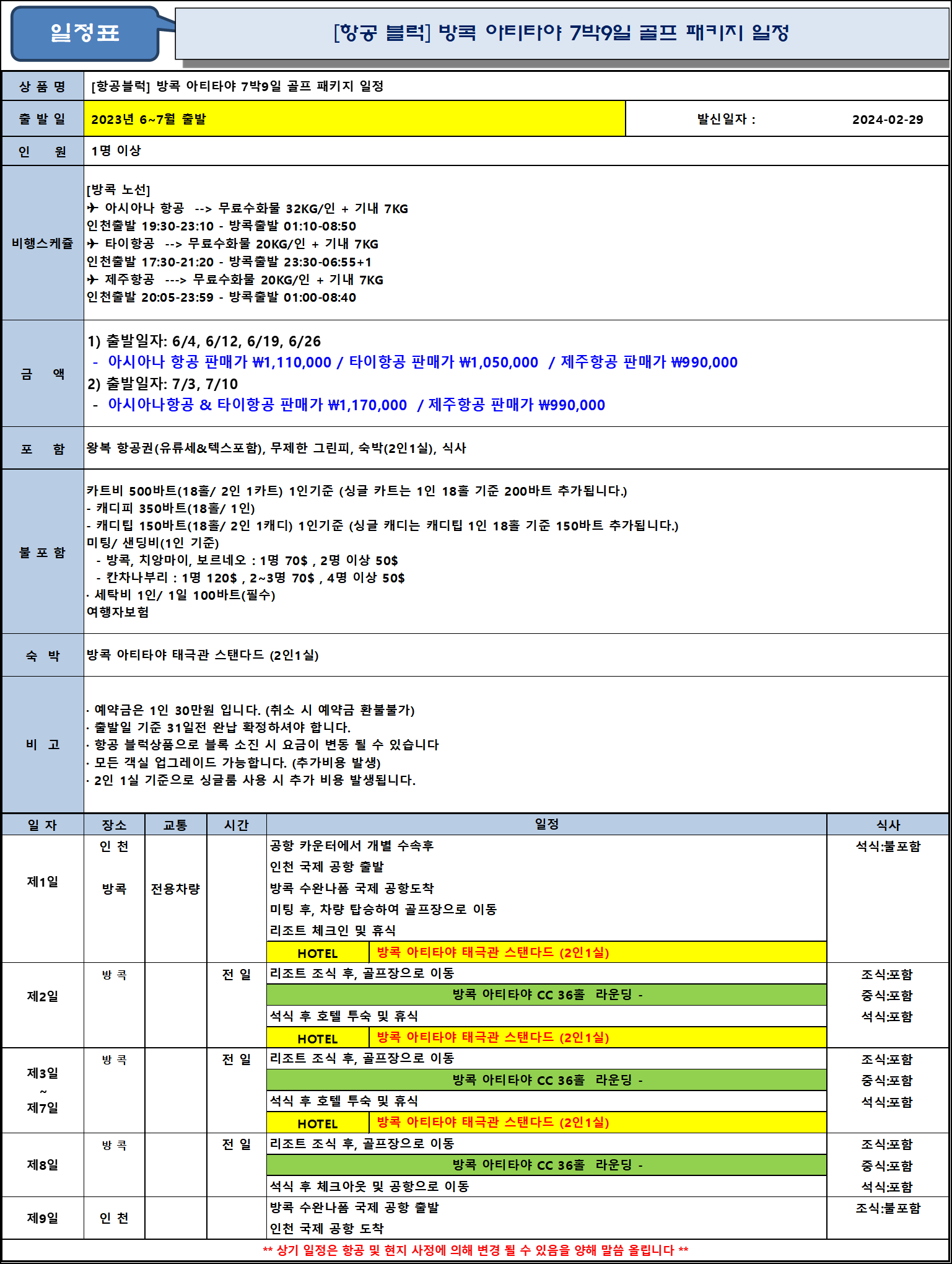 안녕하세요~ 태국 방콕, 치앙마이, 칸차나부리 / 코타키나발루 아티타야 항공 블럭 패키지 특가 안내드립니다~^^