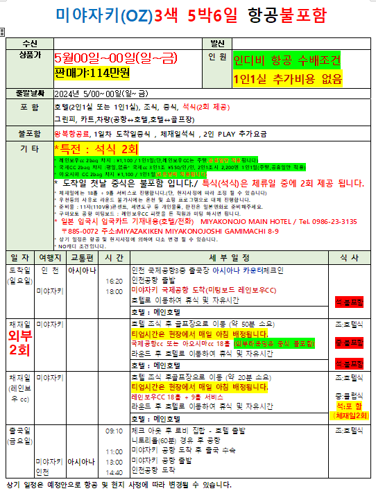 미야자키 레이보우cc 3색골프