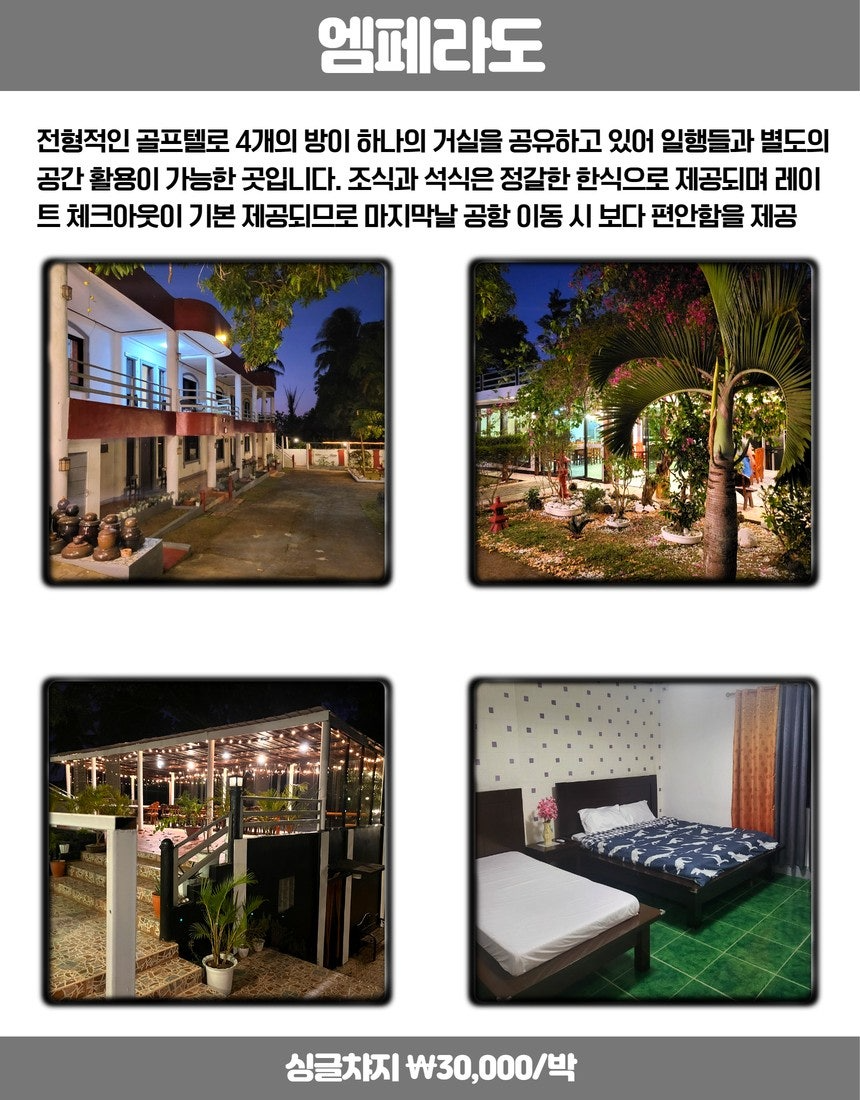 🏬 호텔 업그레이드 가능하며 별도 문의