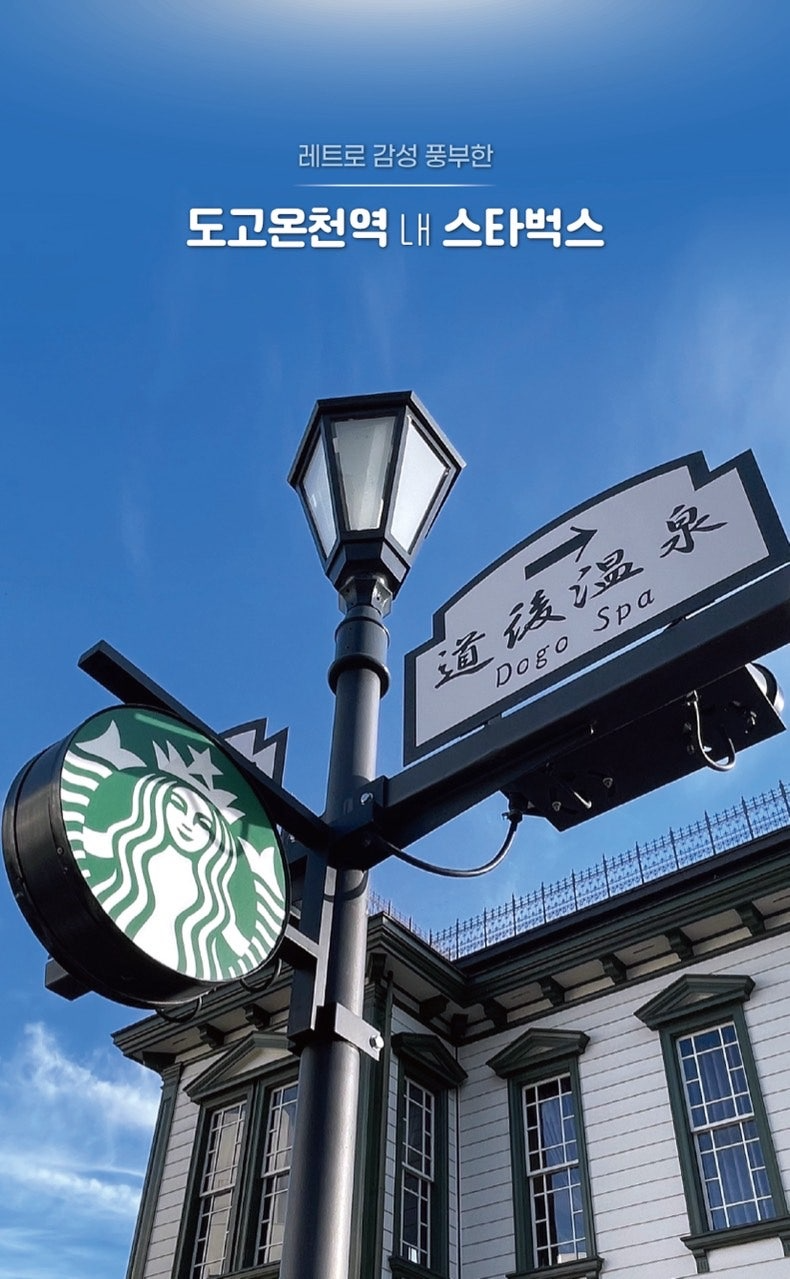 도보30초, 도고온천역행 노면전차,정거장 과 스타벅스 , 오카이도아케이트 ,