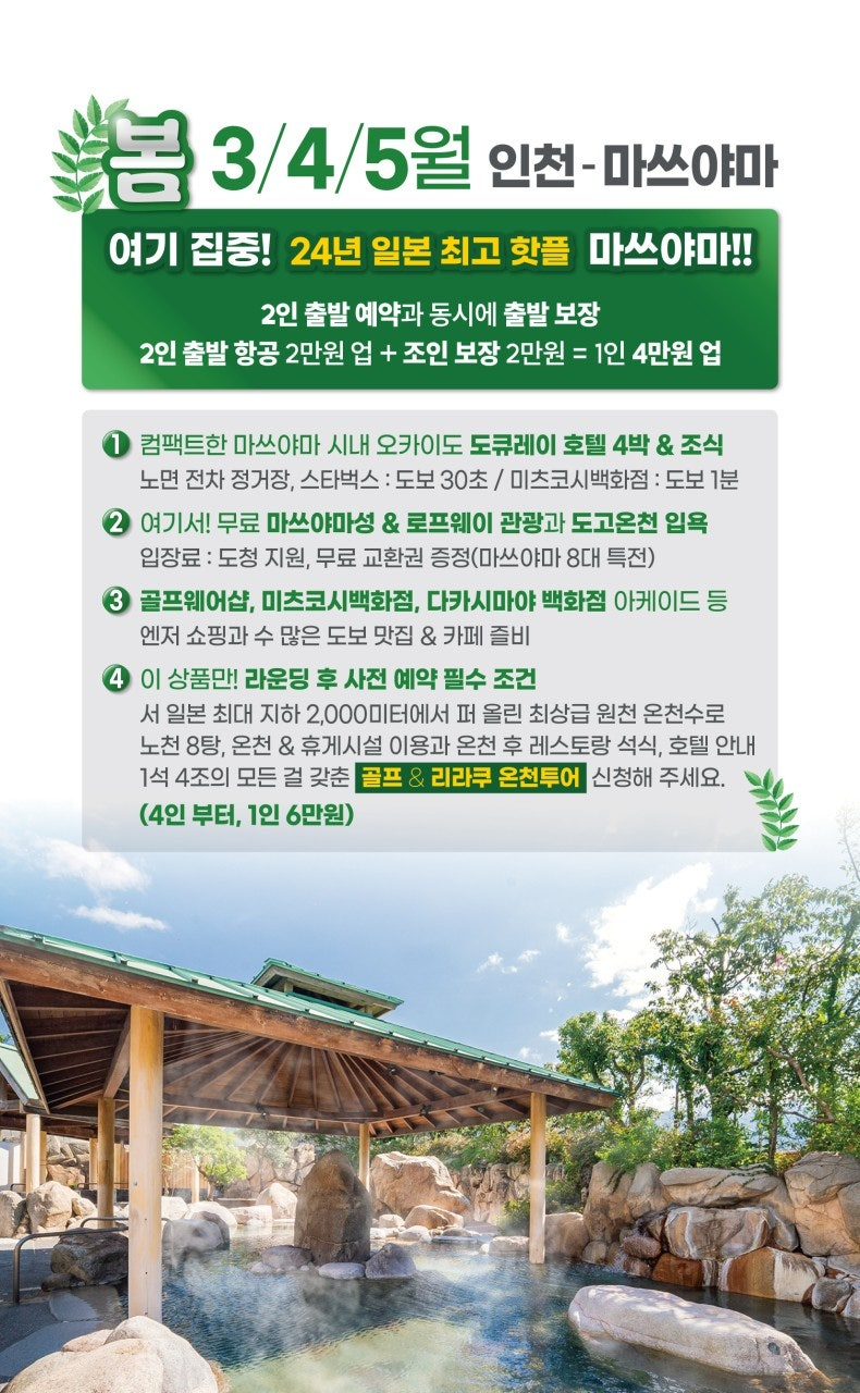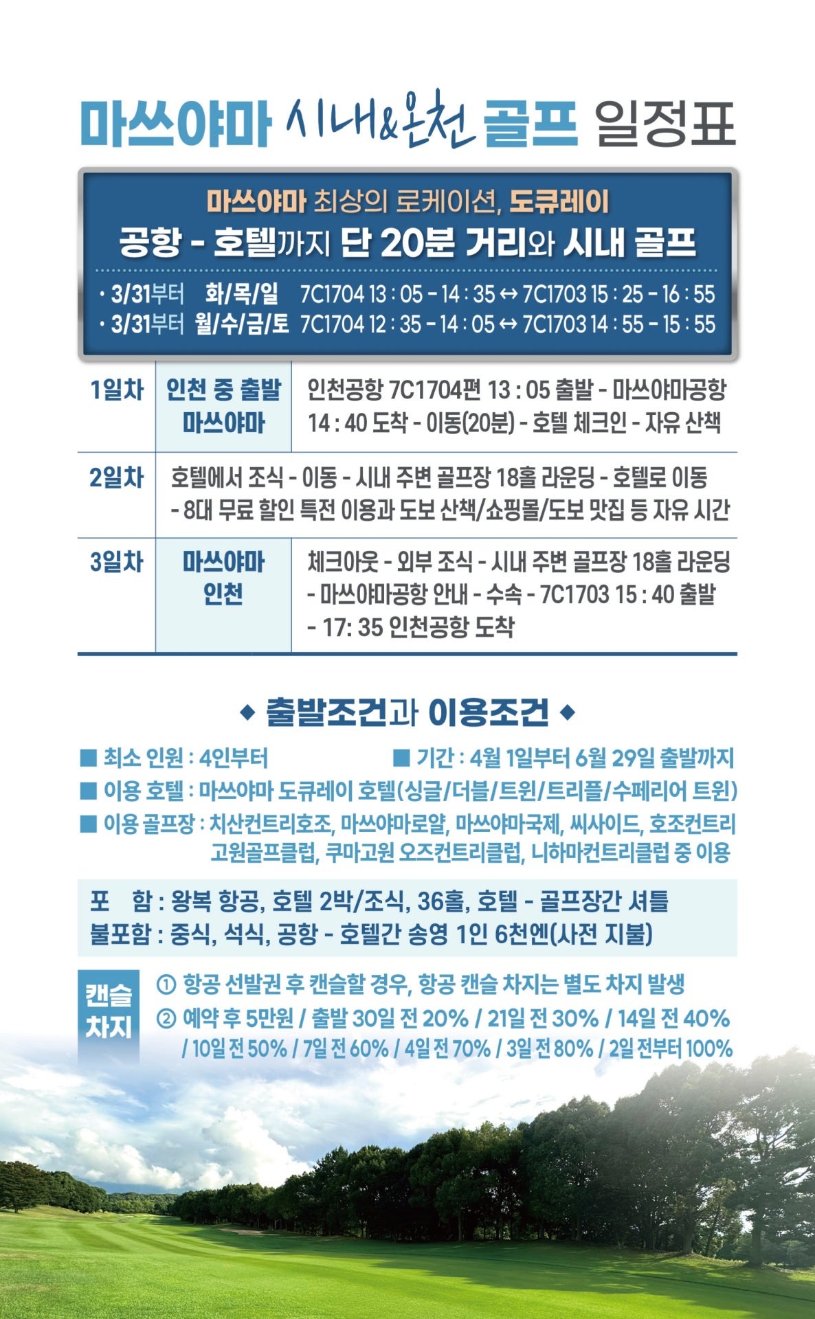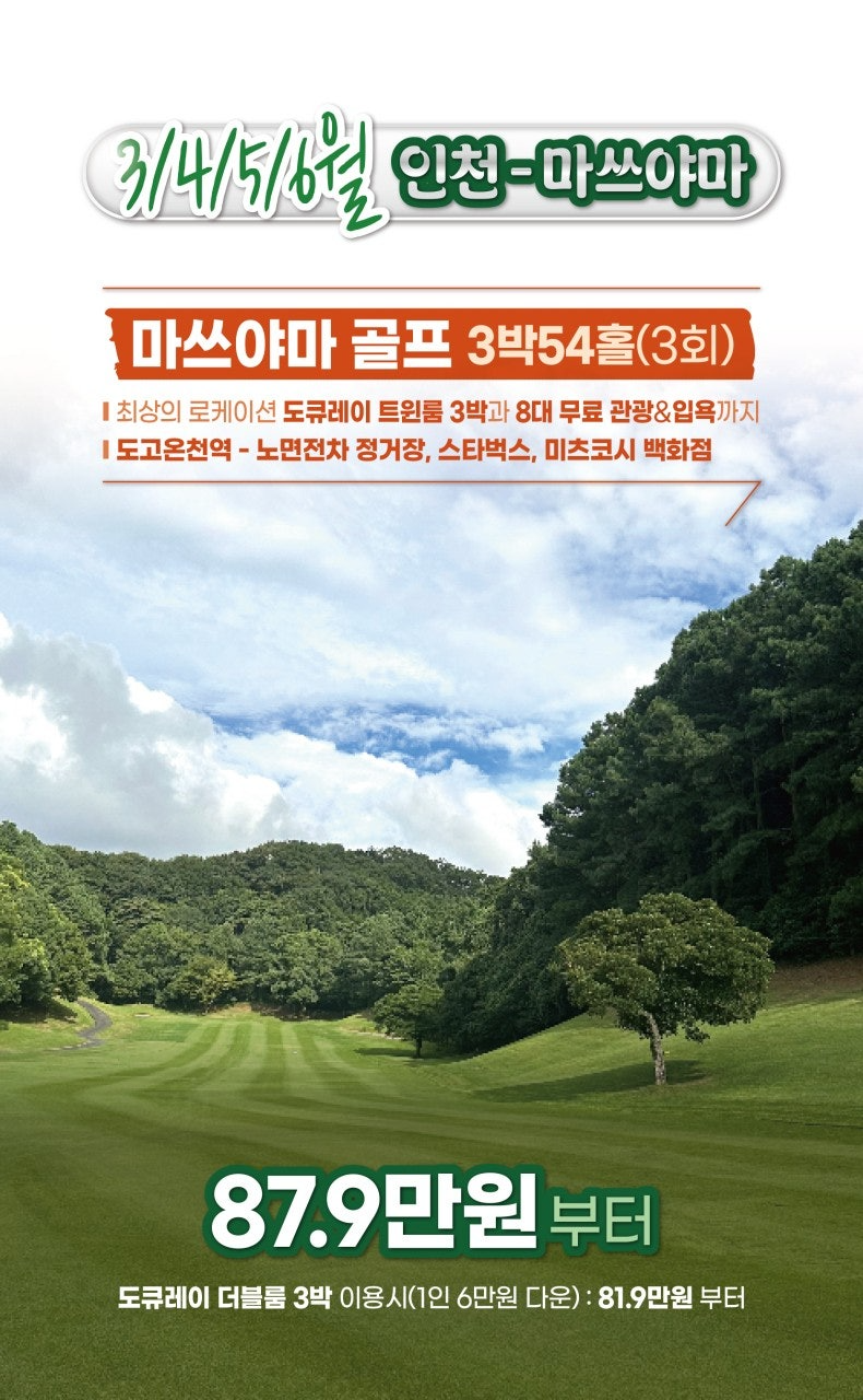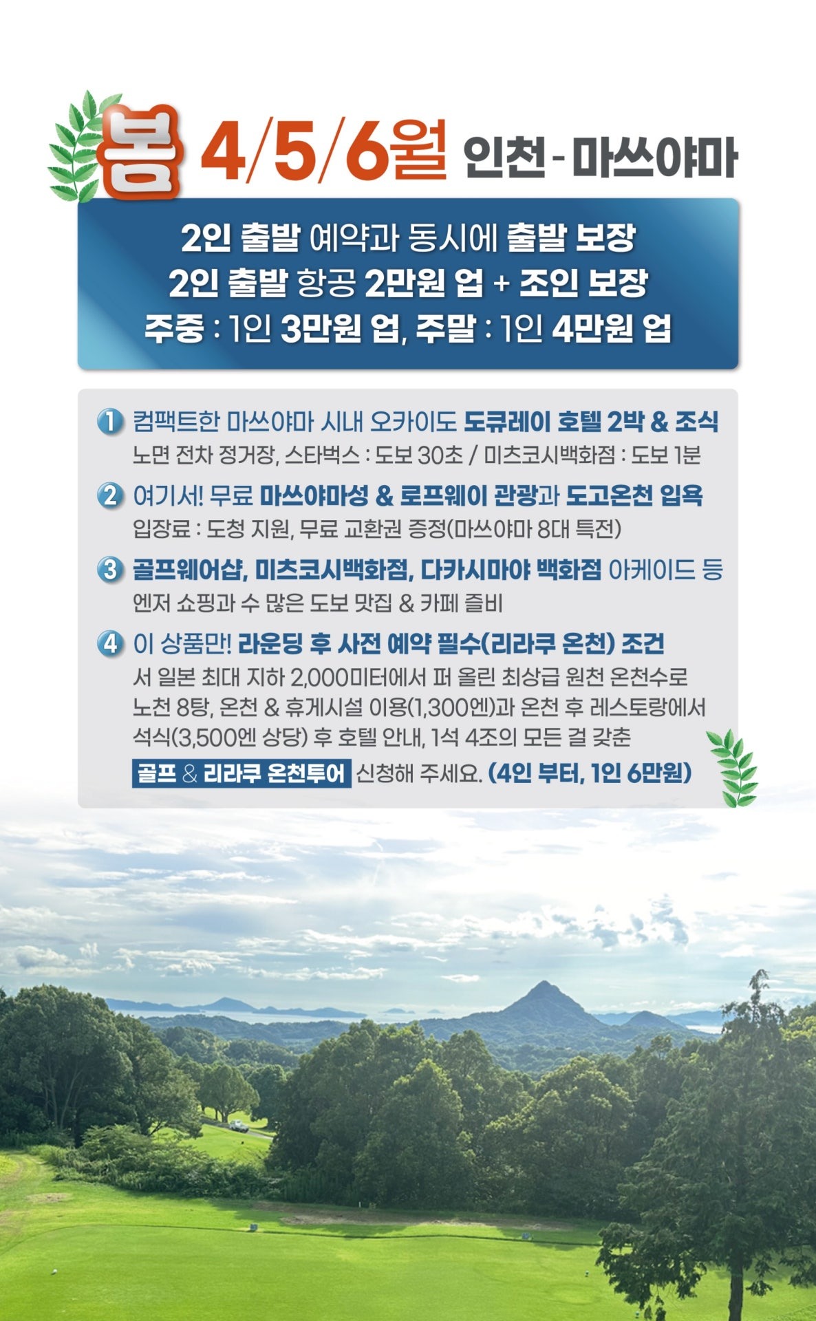 4월도 인기 !! 마쓰야마 시내골프 2박전용,그룹특가요금 오픈 !! 2박36홀 ,