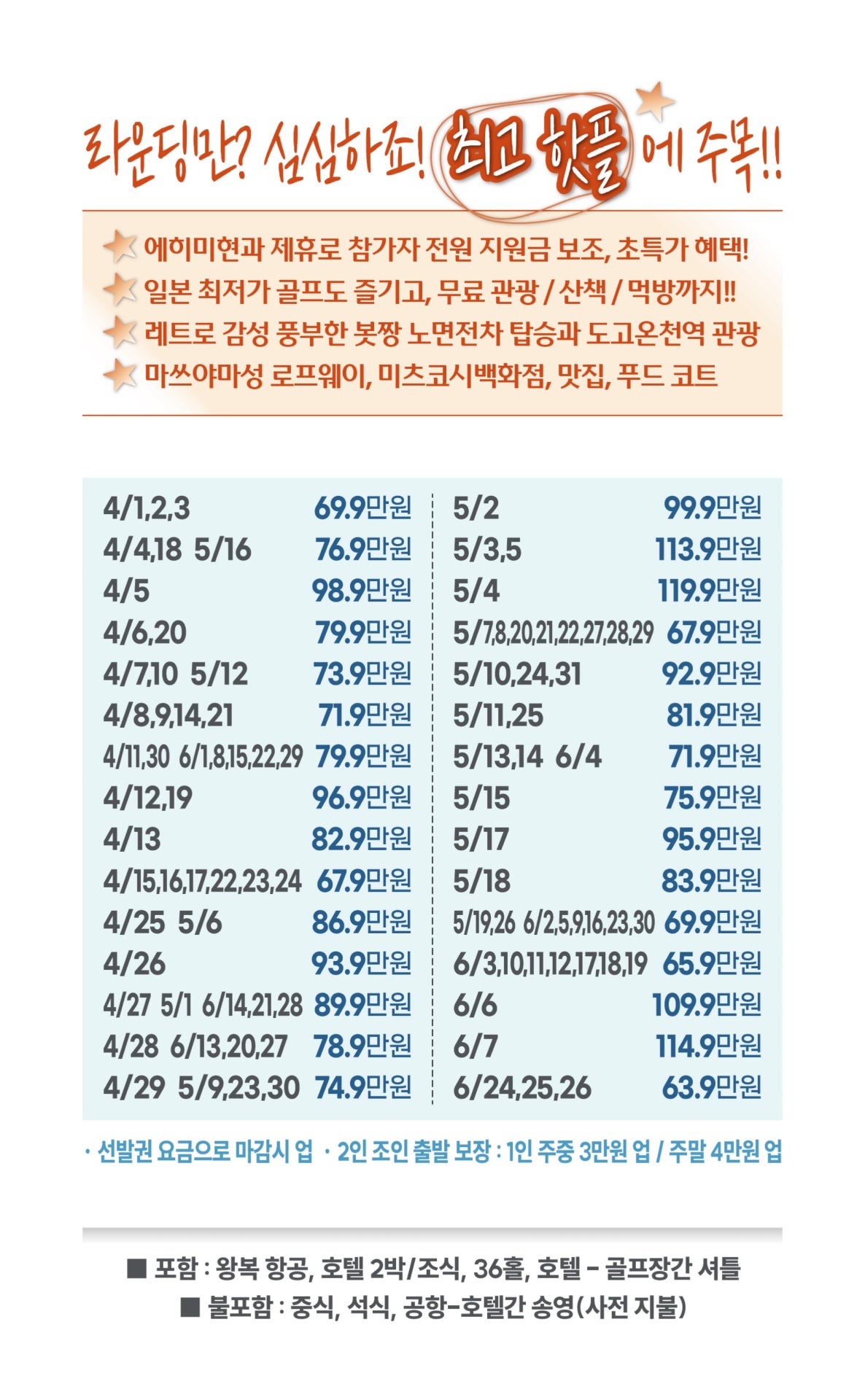 3박54홀 4월 94,9만 / 5월 89,9만 / 6월 87,9만부터