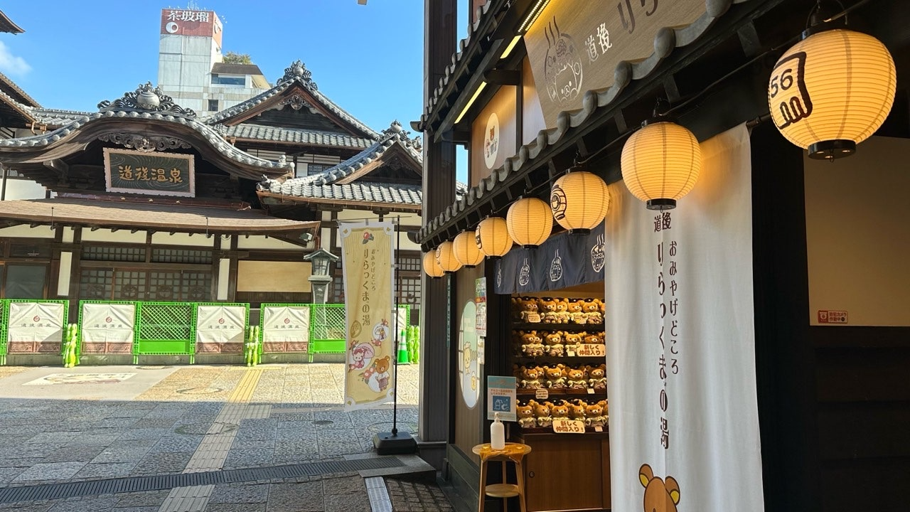그리고 로프웨이길로 도보 5분 로프웨이 탑승지와 마쓰야마성 무료관광(교환권 배부) 노면전차로 10분 도고온천역과 스타벅스 도고온천본관과 별관 아스카노유 무료 입욕 (교환권 배부)