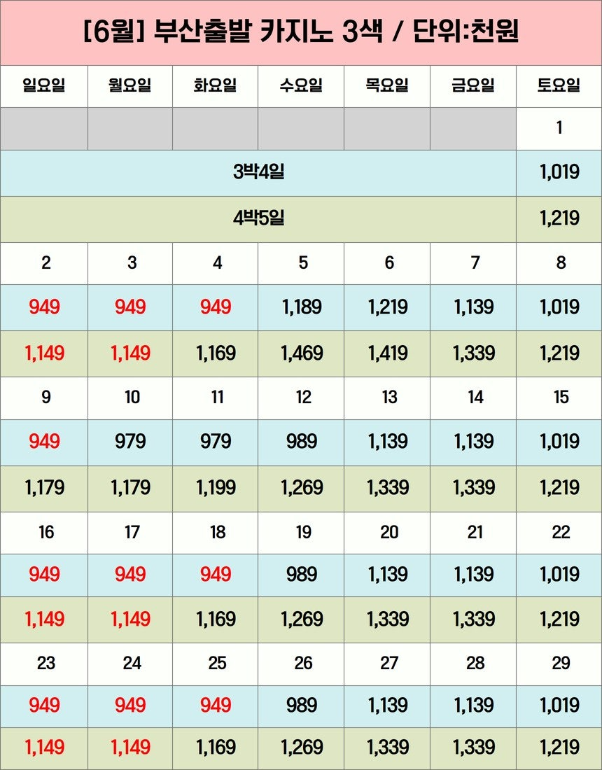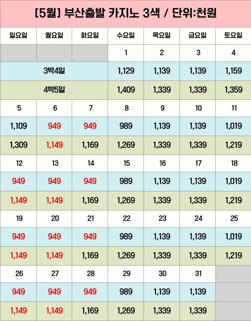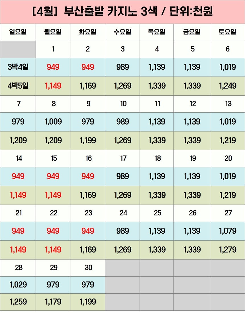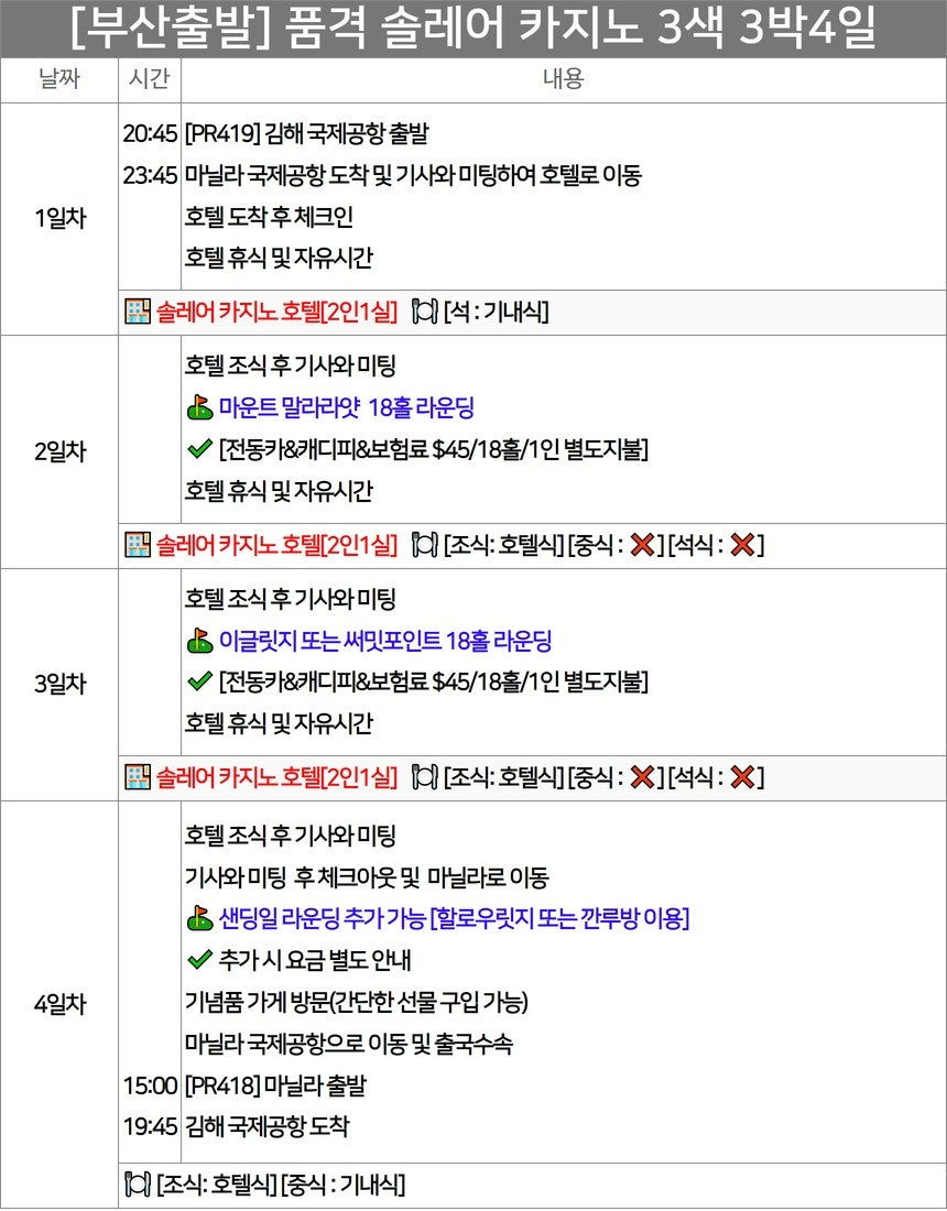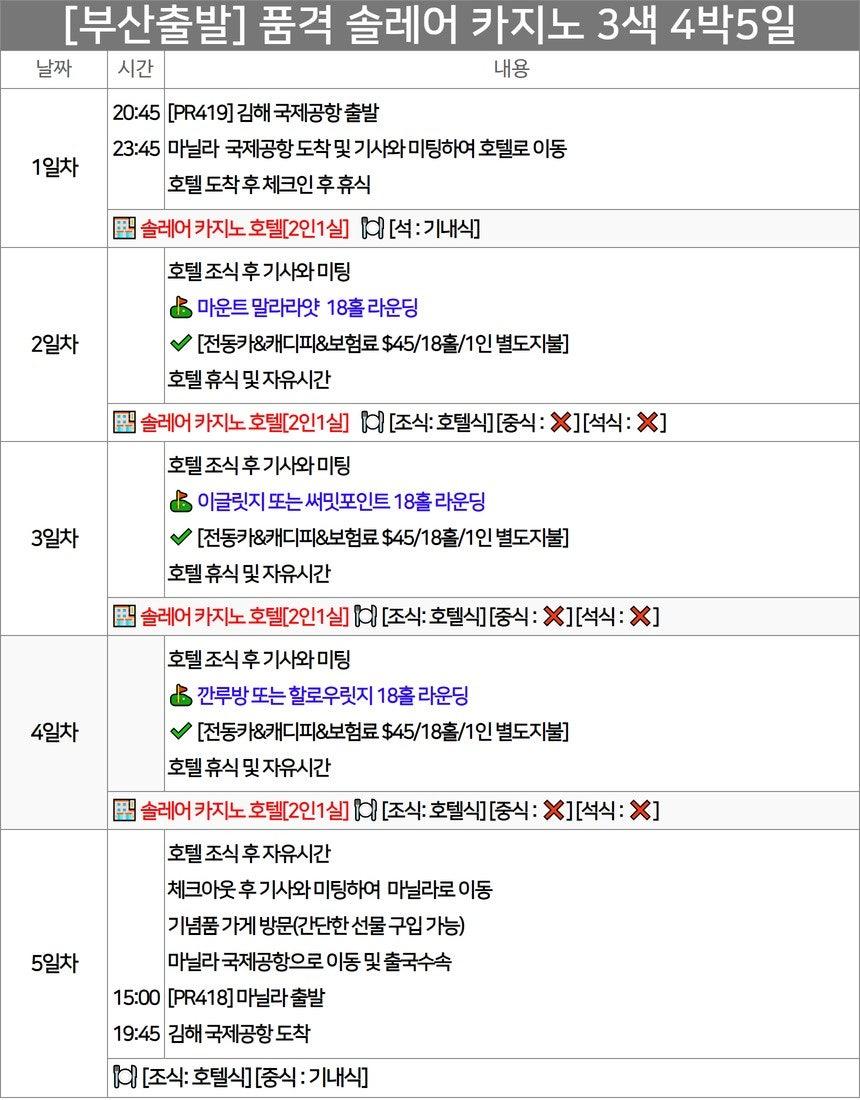 ☑️ 부산출발 [PR419 20:45-23:45 / PR418 15:00-19:45]