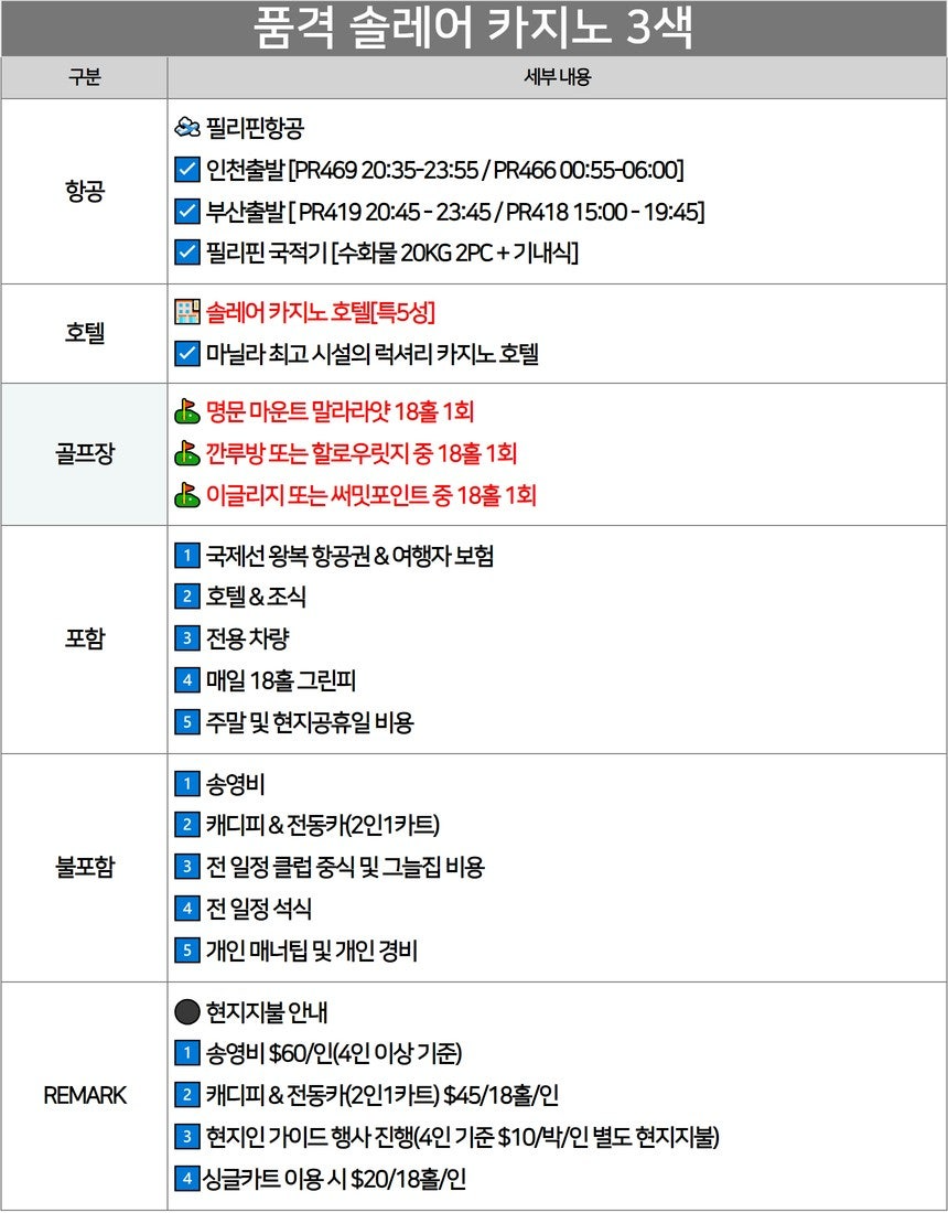 🏌️ 솔레어 카지노 3색 얼리버드 특가 [2인 가능]