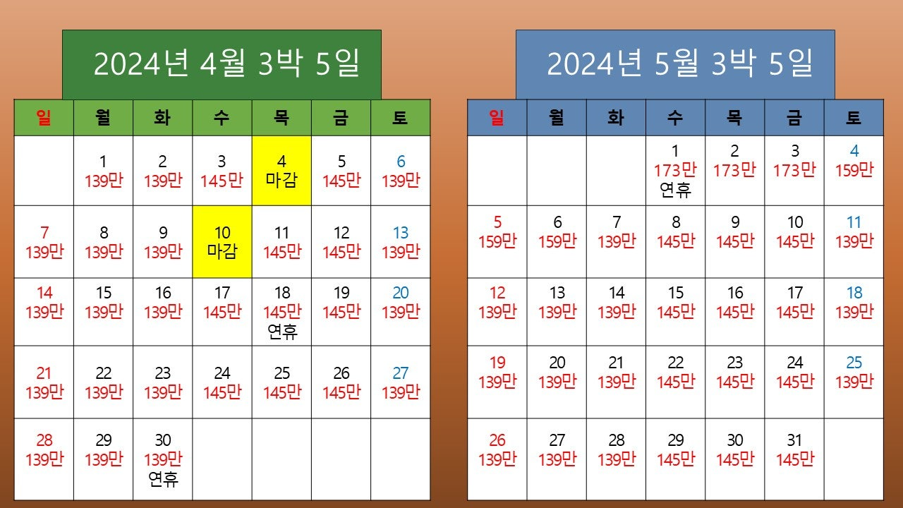 -4월4일 . 4월10일날짜 항공마감 되었습니다.