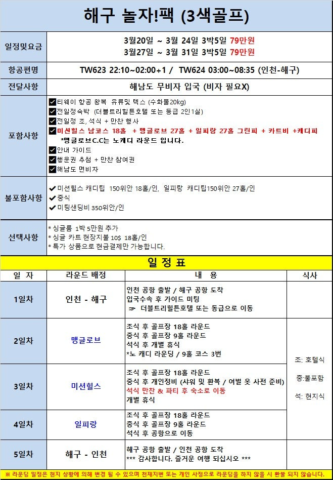 *현지상황에 따라 라운딩 일정은 조율 될 수 있습니다.