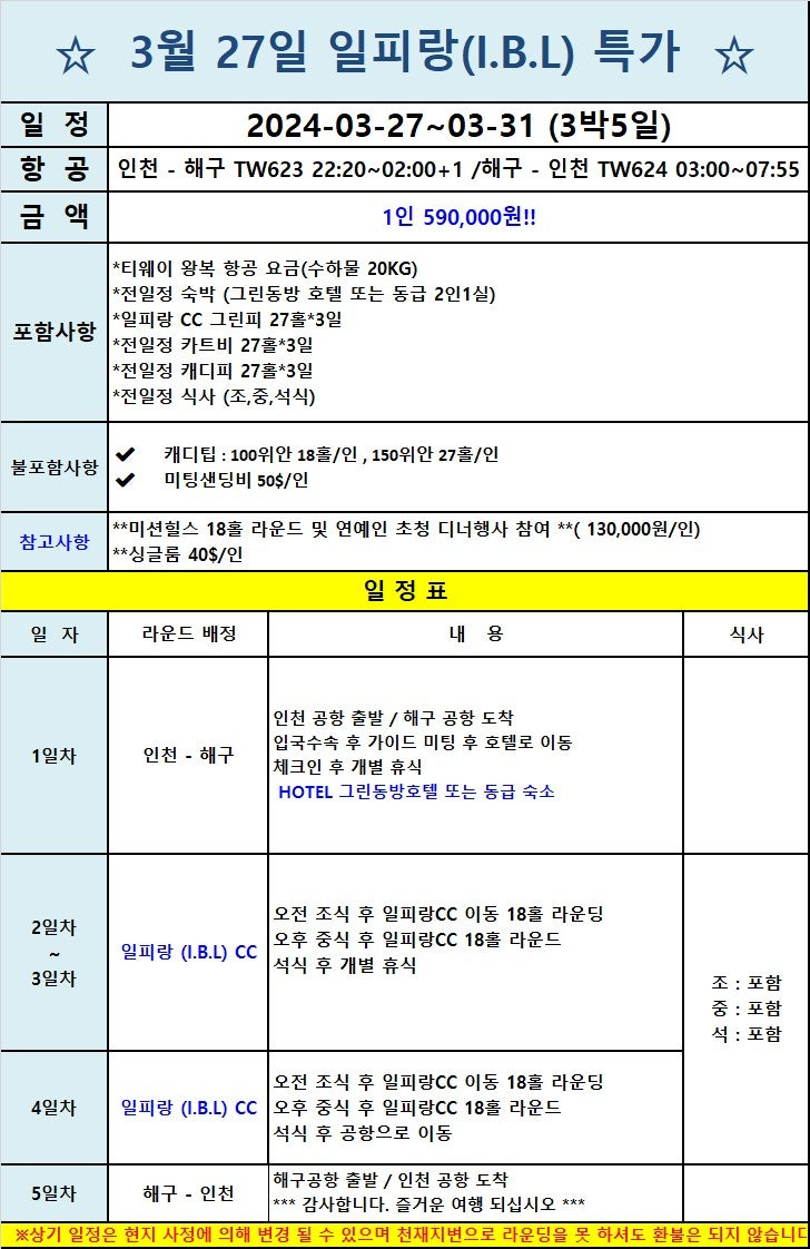 ❤️❤️카트비,캐디피에 전일정 식사까지 포함!!