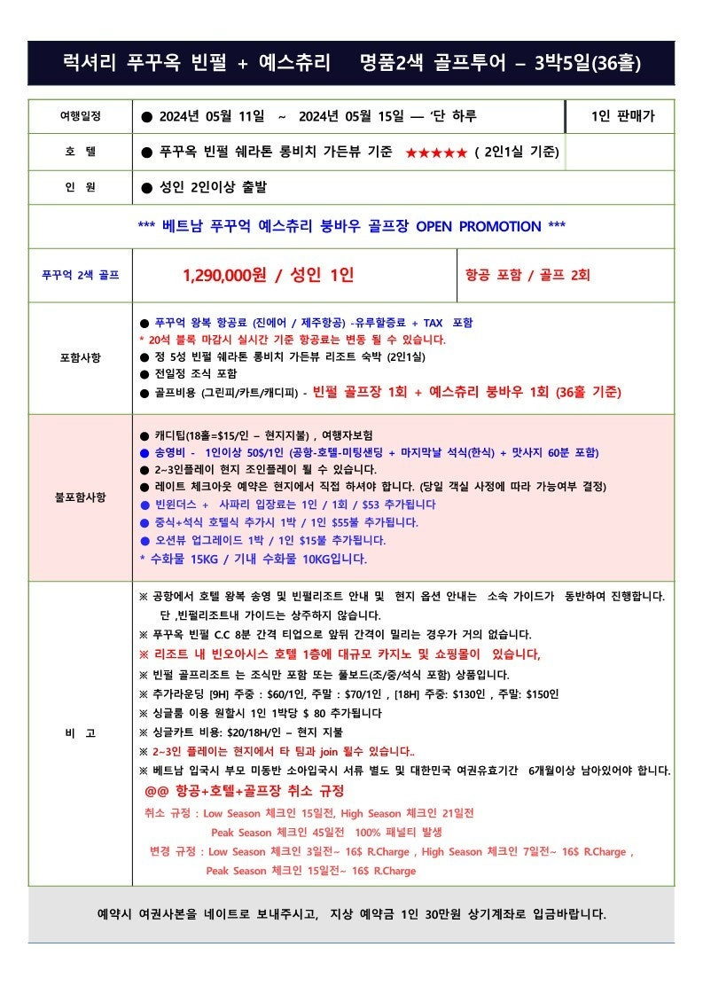 푸꾸억 2색 골프 "단 하루" 프로모션 진행 합니다.