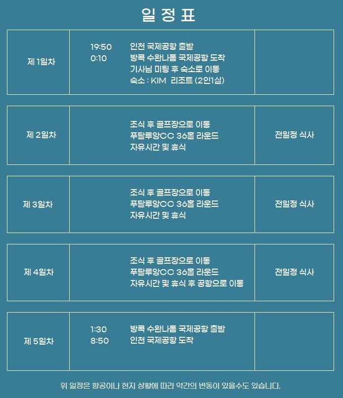 - 1인1카트/1인1캐디 -주중 2500바트, 주말 3100바트, 캐디팁 300바트, 중식별도