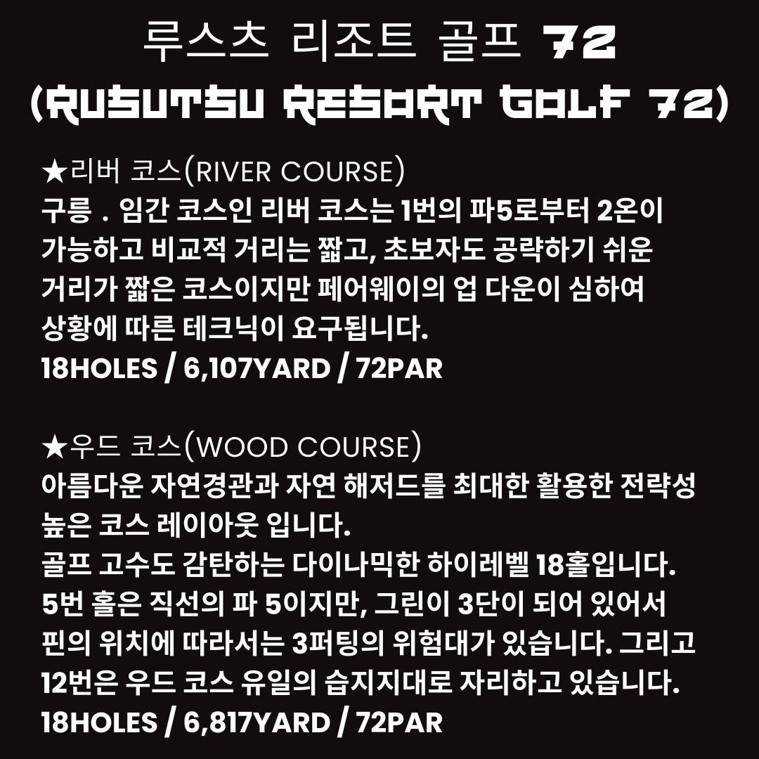 일본을 대표하는 오자키 마사시 프로가 홋카이도의 대자연을 무대로 절묘한 언쥬레이션과 로케이션을 살려서 감수한 코스입니다. 구릉 코스로 완만한 비탈의 지면에서, 나무도 비교적 많이 있어서 즐길 수 있는 코스로 되어 있습니다.
