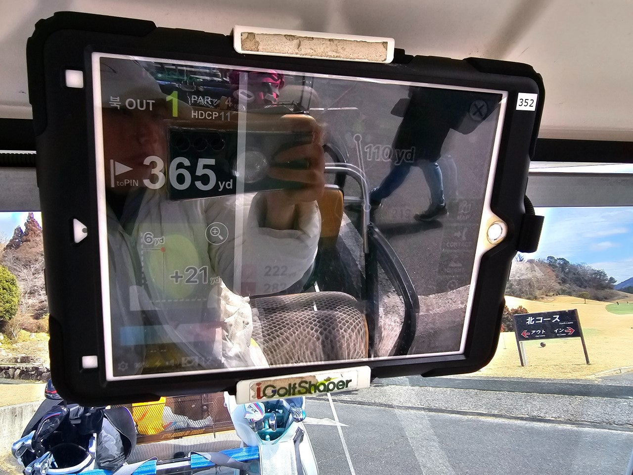 카트에는 GPS 가 장착 되어 남은 거리 및 앞팀과의 거리등을 알수 있습니다.