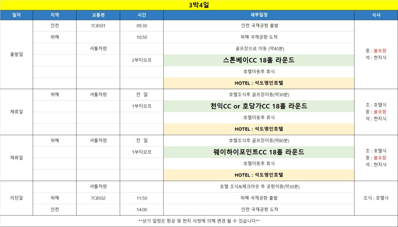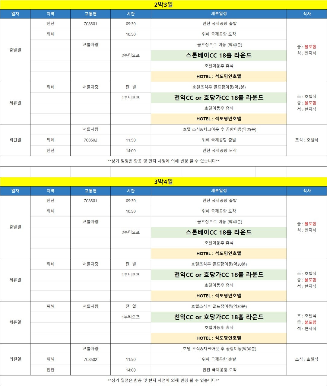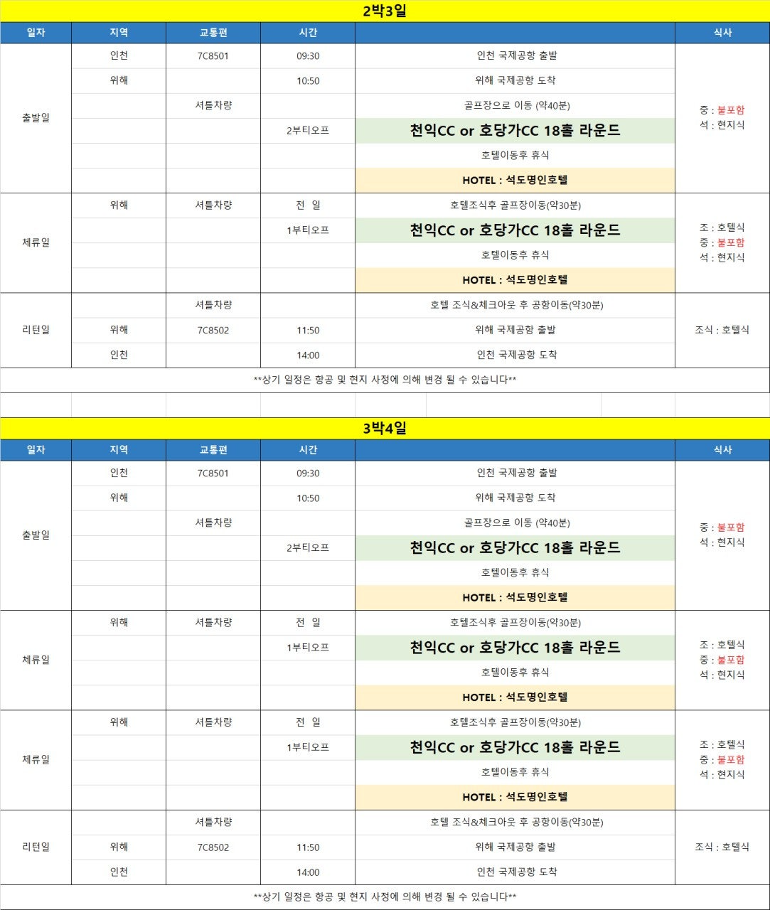 🔔 중국위해골프 제주항공팩 1인 399,000원부터~ 실속2색, 품격3색, 럭셔리3색 / 2박,3박 🔔