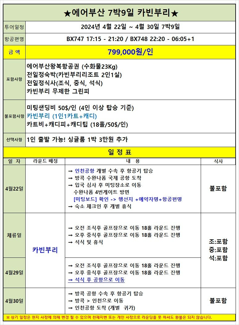 일 정 : 4월 22일 ~ 4월 30일 7박9일