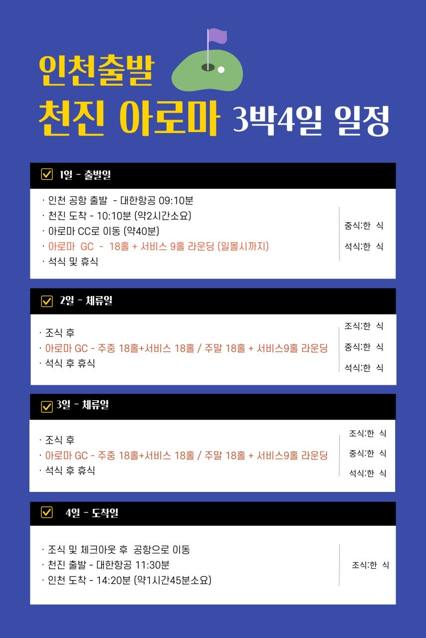✅✔ 천진 아로마 골프텔 상품 간략설명 ✅✔