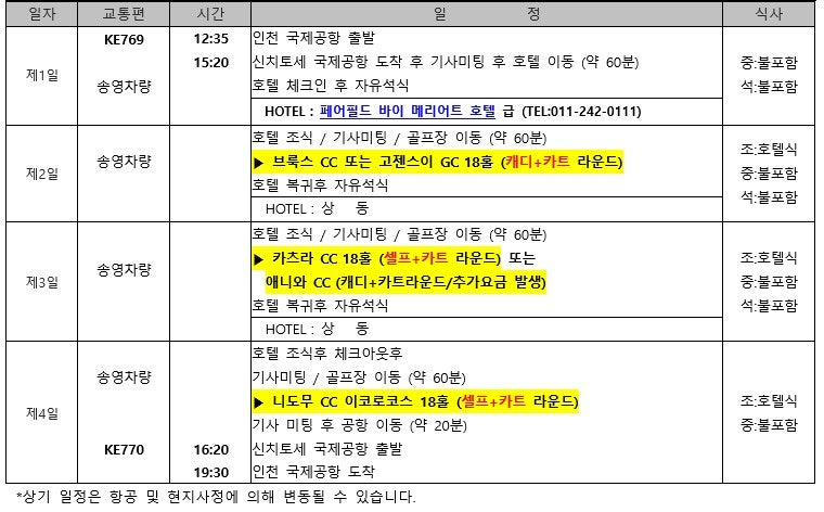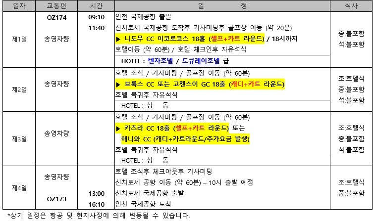 중식은 골프장에서 드시면 되고 석식도 자유롭게 각자 해결 해야합니다.