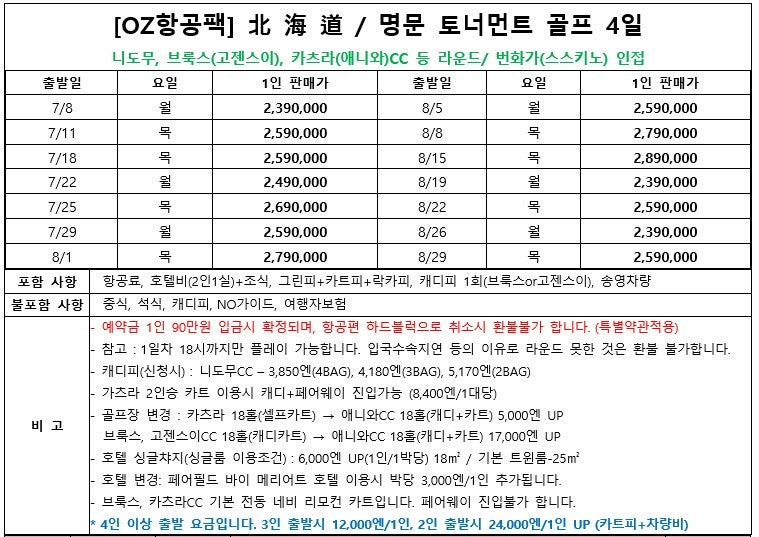 ✔️ 일본 북해도 골프상품을 이용하신 고객님들이 식상한 리조트 상품말고 이제는 명문토너먼트 코스 라운드를 희망하시는 분이 많습니다.