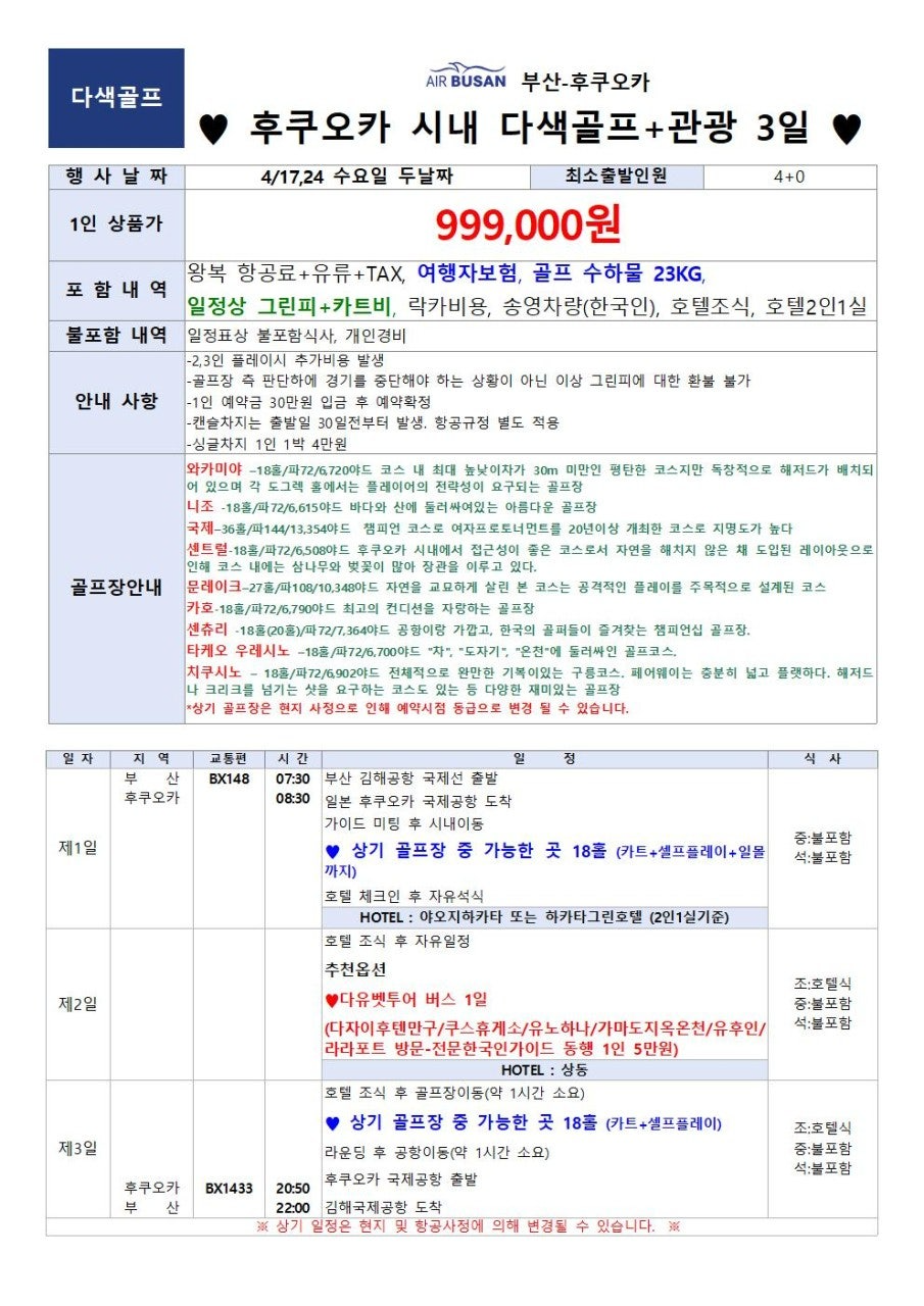 후쿠오카 시내다색골프 3일