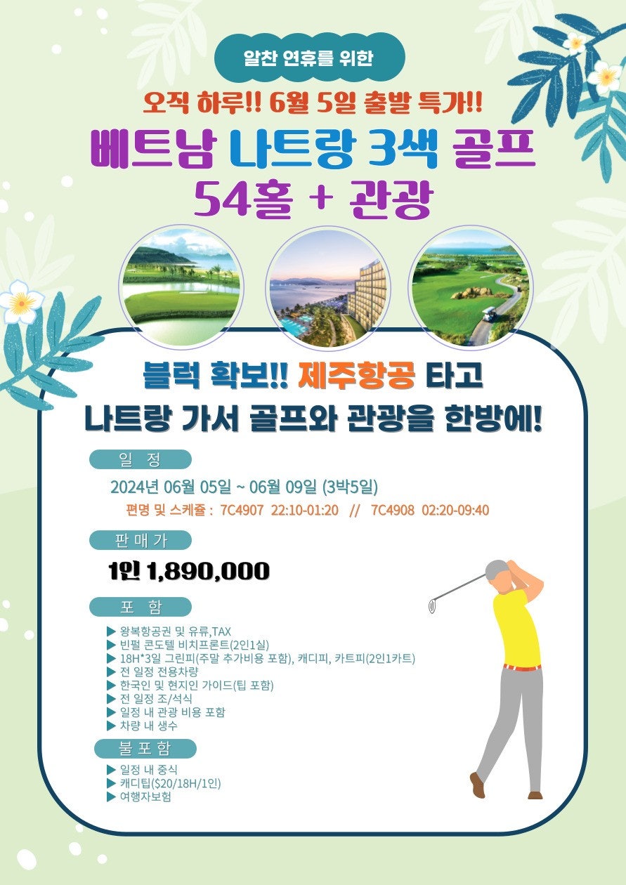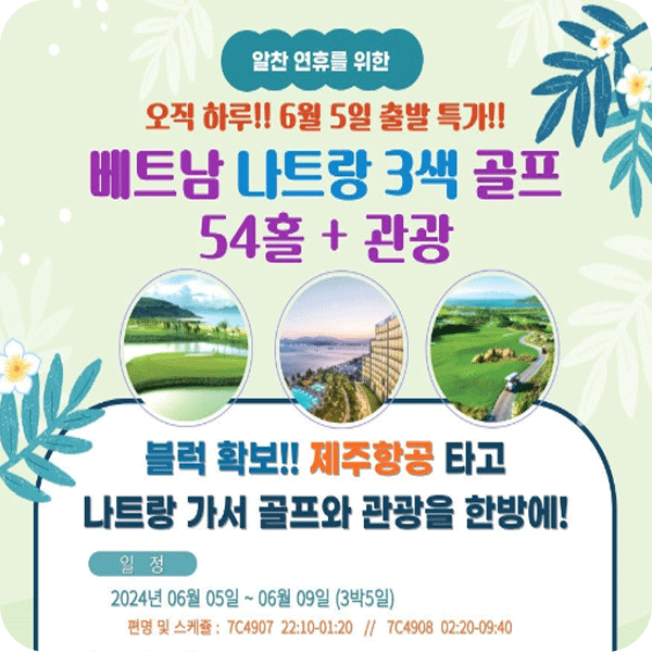 6월5일 연휴 !!!! 나트랑 3색골프 3박5일 특가!