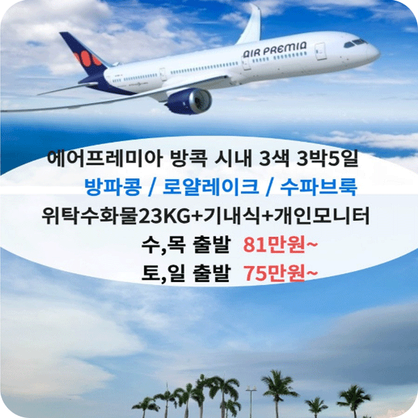 항공 : 에어프레미아항공 (위탁수화물23KG,기내수화물10KG)