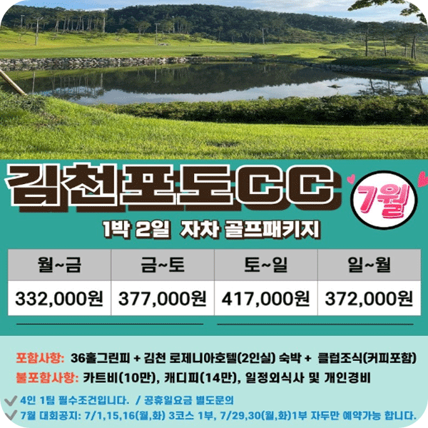 🔎 불포함사항: 카트비, 캐디피, 일정외식사 및 개인경비