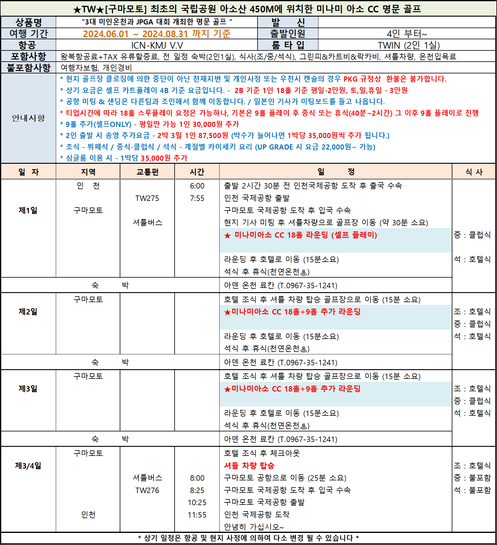 ⛳ 24년 06.01 ~ 10.31 (첨부 화일 참조) 이외 날짜 별도 문의