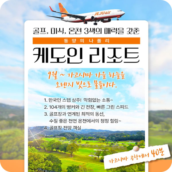 ✈ 제주항공 가고시마 왕복 ( 7C1808 12:40-14:30 / 7C1807 15:30-17:40)