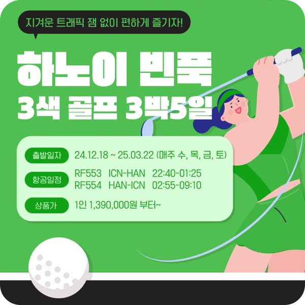 ▶ 불포함사항 : 중/석식, 캐디팁(1인18홀$20), 여행자보험, 기타 개인경비