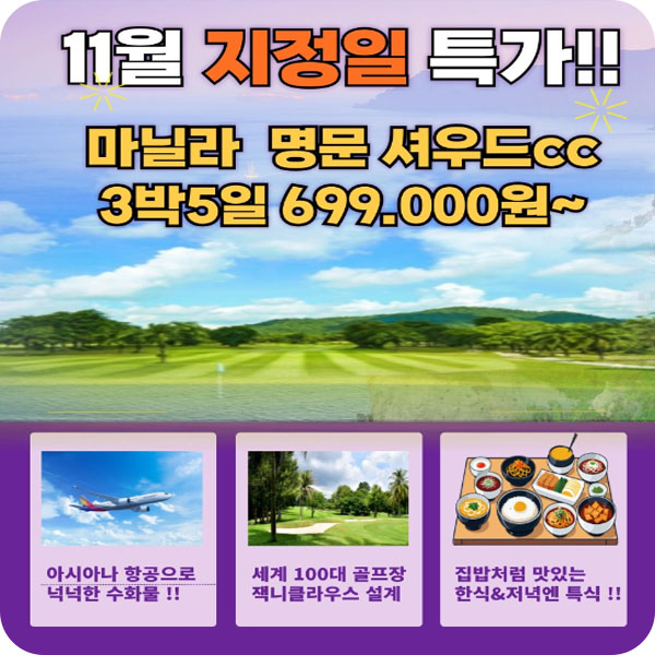 명문 셔우드cc 11월 2회 특가를 진행 합니다