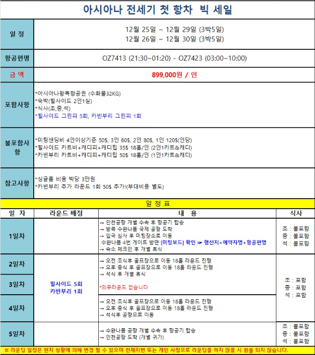 일 정 : 12월25일 ~ 12월29일 (3박5일)