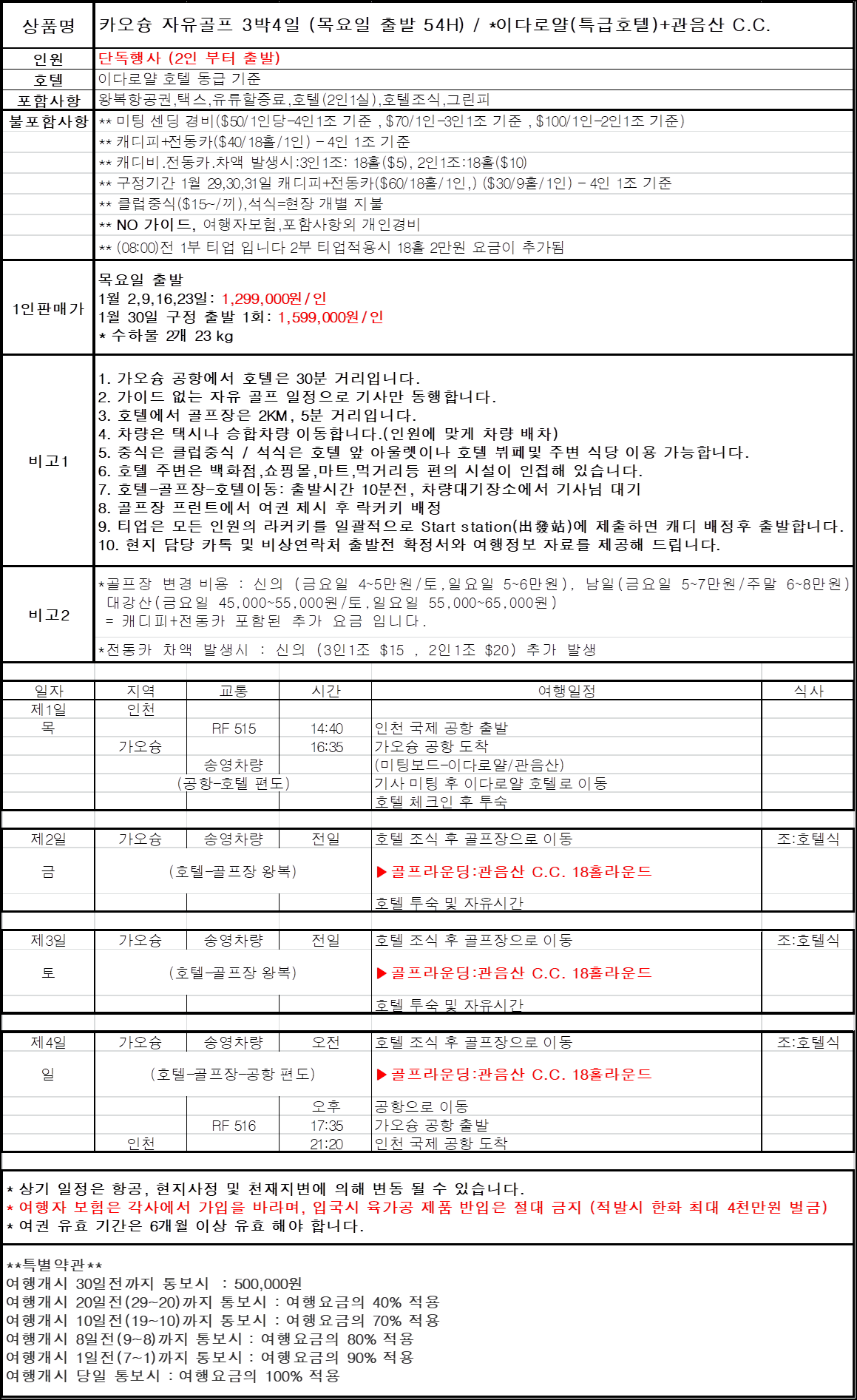 항공, 호텔, 골프장 = 행사에 대해서 걱정할 필요가 없습니다. 2인이상 출발 보장합니다.