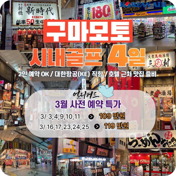 ⛳구마모토 시내 + 상급 3색 골프 4일(KE)⛳