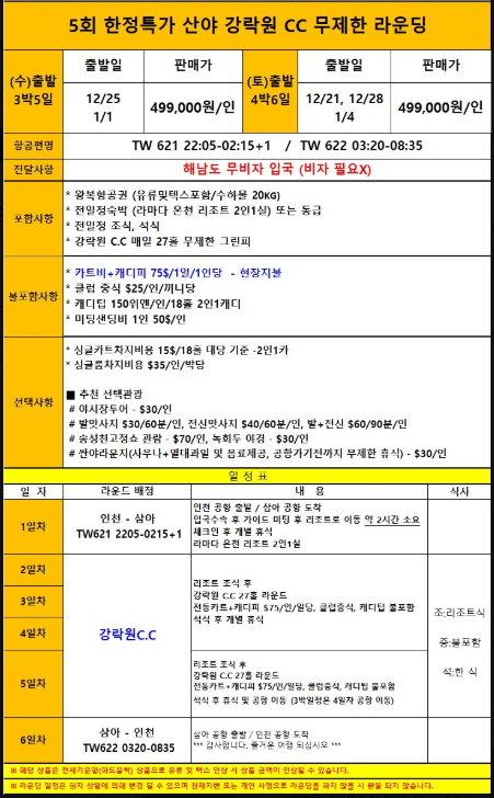 * 인천 - 삼아 티웨이 전세기 (수화물20KG)