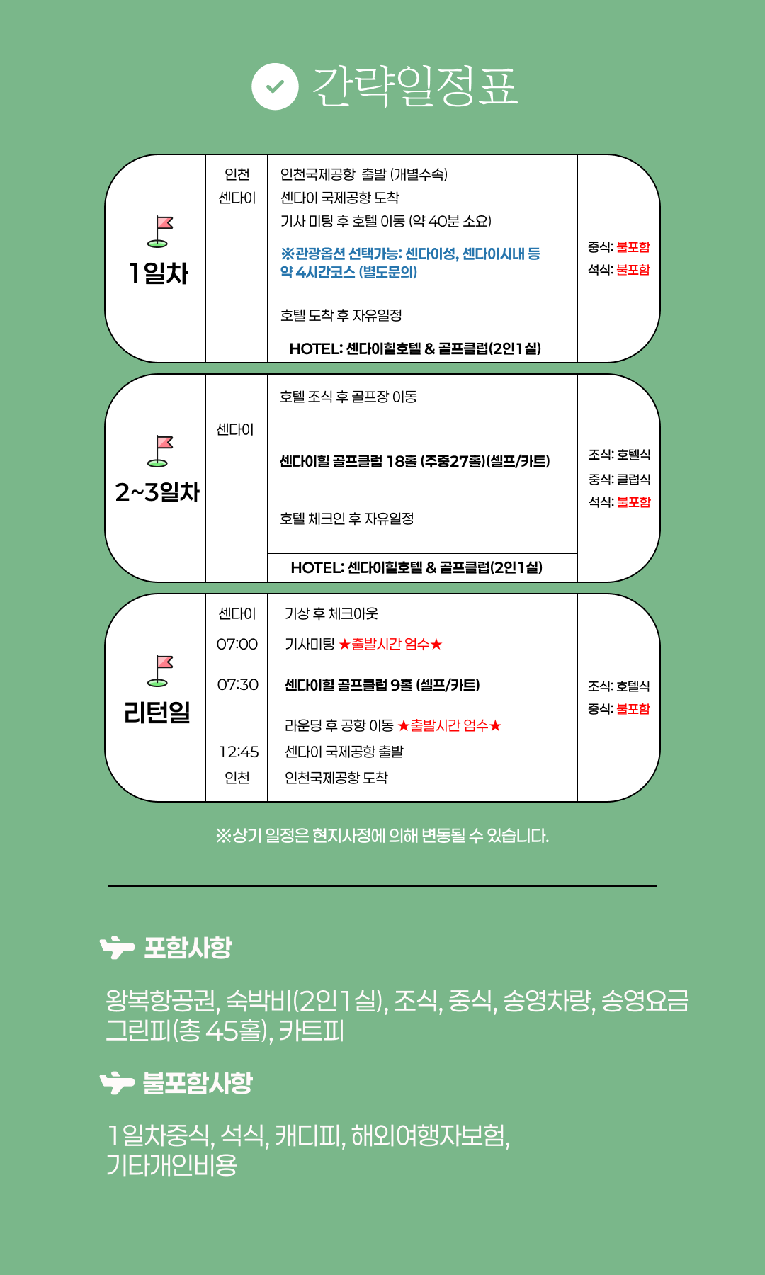 센다이힐 골프 리조트 3박4일 단2주 초특가! 이벤트